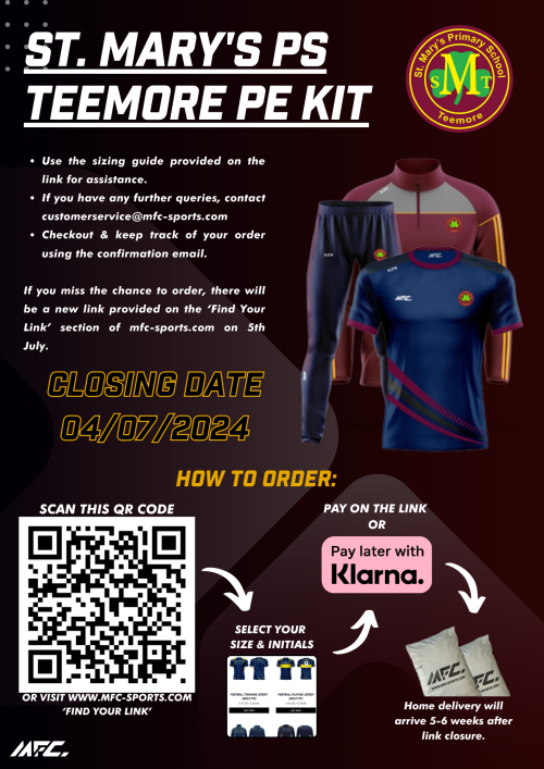 MFC PE Uniform Orders - closes on 4th July 2024.