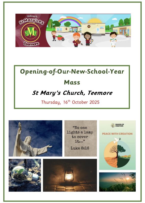 Welcome to the Opening-of-Our-New-School-Year Mass - Thursday, 16th October - 10.00 am